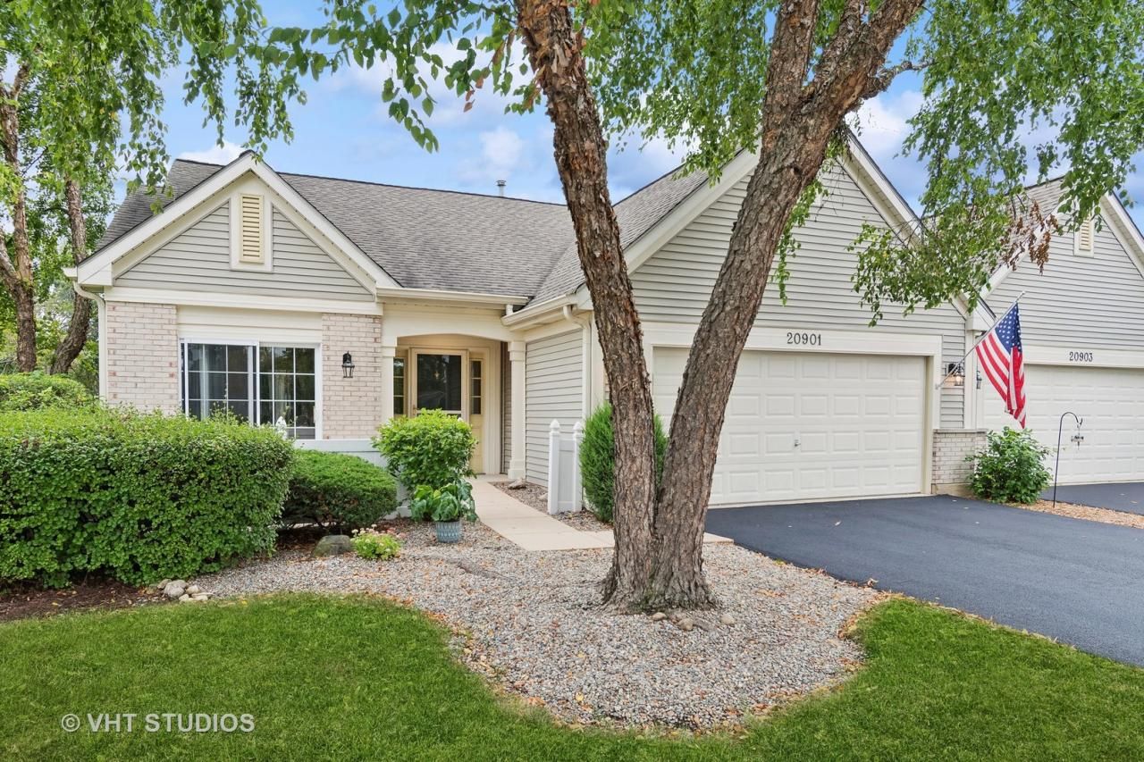 Simply lovely 2 bedroom, 2 bath END UNIT ranch townhome with BASEMENT located in Carillon 55+ active adult community. Super clean and well maintained, this home is move in ready!! The spacious kitchen features HARDWOOD FLOORS, pantry, plenty of storage, ceiling fan, and enough space for a table. The sliding door opens directly to an enclosed patio, perfect for alfresco dining! The large combination living room and dining room offers enough space for dining, entertaining, or simply enjoying your favorite TV show. Another sliding glass door opens to the NEW deck where you can enjoy the serene green space. The spacious primary bedroom features a ceiling fan, and a huge walk in closet. The large private bath has a walk in shower and separate soaking tub. There is also a double sink vanity. The second bedroom located off of the living area could be a den. There is an additional full bath in the hallway. There is a staircase leading to the large basement. There are pools, tennis courts, and a large clubhouse with numerous diverse activities to enjoy year round. Let's not forget the golf course and restaurant. This is a gated community with 24 hour security.